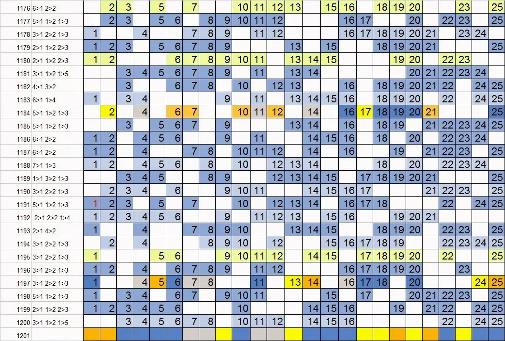 O resultado, nossas sugestões tiveram 100% de acerto, saíram 3 dezenas no grupo 1 (amarelo) - nossa sugestão foi de escolher de uma a tres dezenas deste grupo, saíram quatro dezenas dentro do grupo2 (laranja) nossa sugestão foi de escolher de 3 a 5 dezenas deste grupo, saíram quatro dezenas do grupo3 (cinza) nossa sugestão foi de escolher de 2 a 5 dentro deste grupo, portanto acertamos nossas sugestões, e por fim dentro do grupo azul saíram quatro dezenas, dentro do comportamento normal que geralmente é de entre quatro a cinco dezenas dentro do azul. Espero que alguém tenha conseguido uma boa pontuação utilizando nossa análise. =)