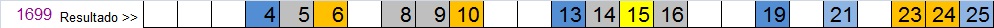 Quadro com os últimos 25 resultados da lotofácil e os grupos para